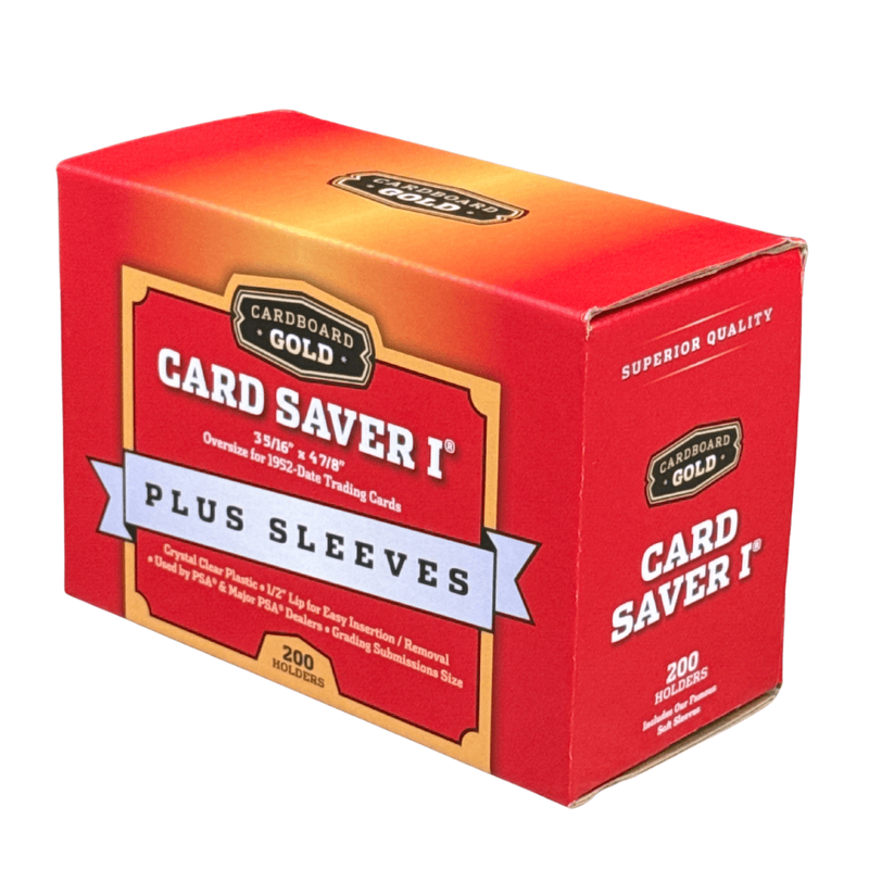 Our famous Card Saver 1 for PSA grading submissions that INCLUDES soft sleeves in every pack! Same soft sleeves that we sell separately by the case. Each Pack/50 Card Saver 1 has a pack/50 soft card sleeves within the package. Same 200 Ct. Box but INCLUDES penny sleeves! This is our flagship product that we have been producing since 1987. PSA has used this product since they starting grading cards in 1987 (Jack delivered them to PSA's old office in his Chevy Suburban once a month!!).
